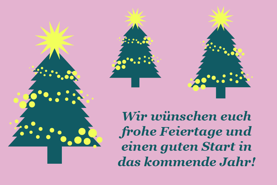 Wir wünschen euch schöne Feiertage und einen guten Start in ein friedliches und glückliches neues Jahr!